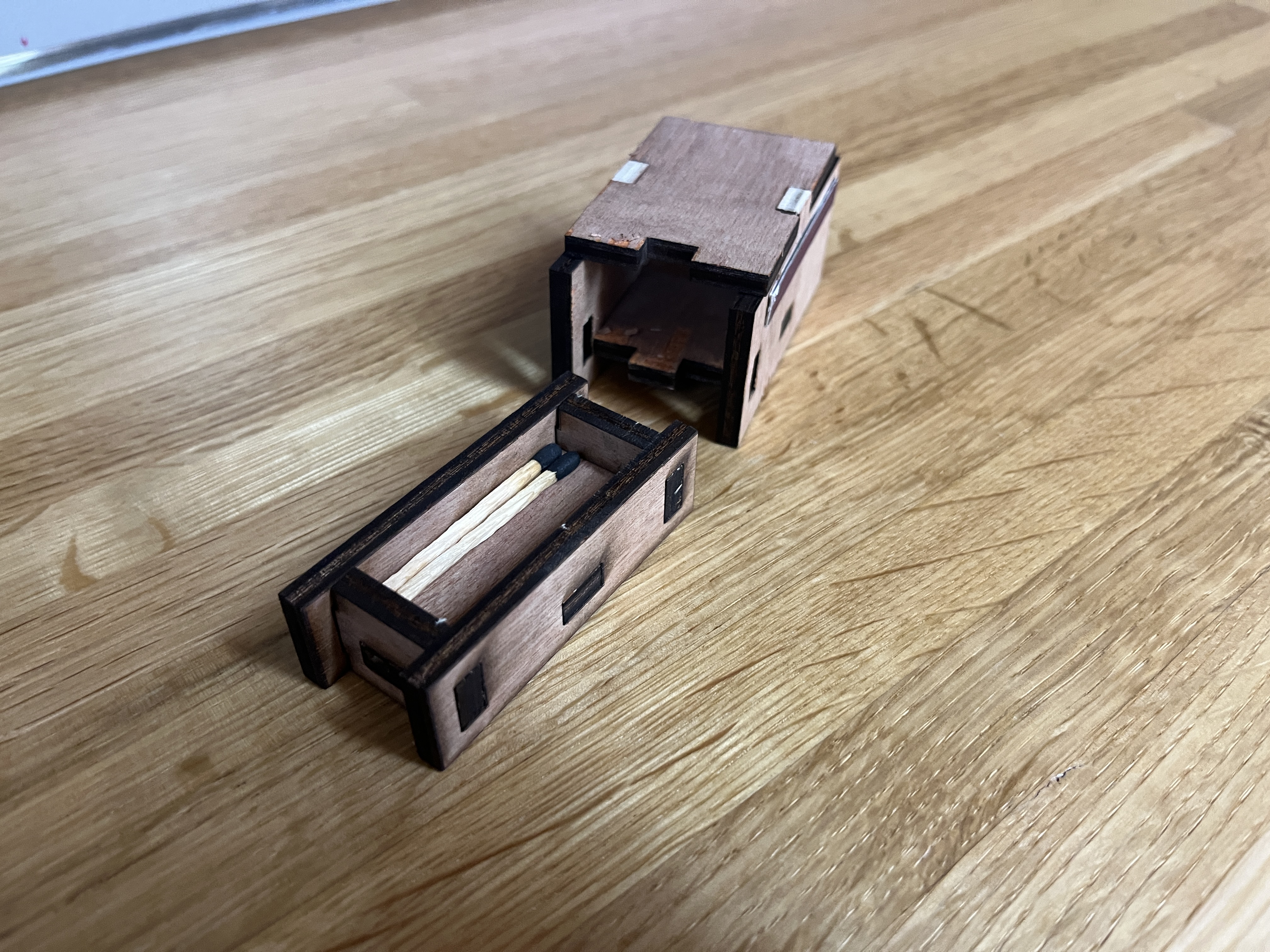 For the enclosure assignment, I wanted to make a box that’s not typically made with wood or other materials that are made to be used for longer. The matchbox is what I ended up working with.