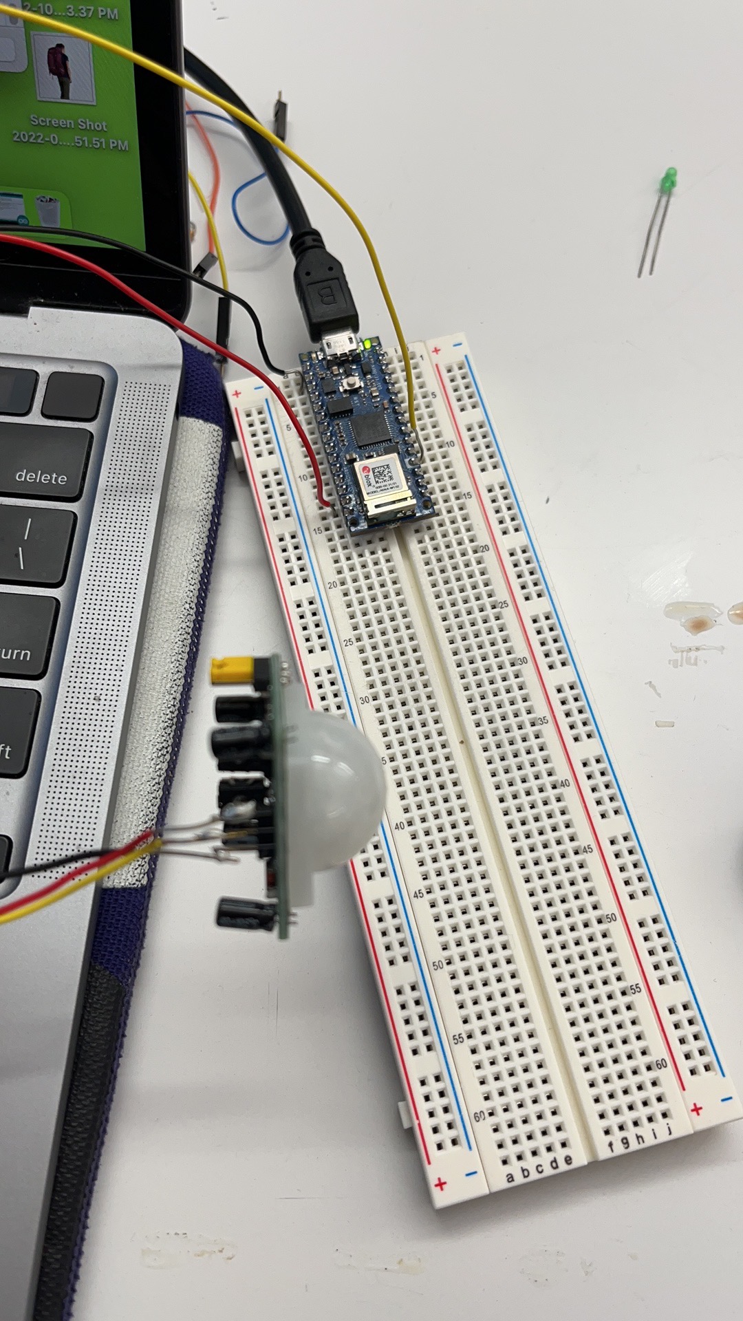 Second thing I worked on is getting the value from the PIR sensor. This process of this was a bit more complicated than I imagined. Initially, I tried to control a LED light with the sensor but the value was always stuck.